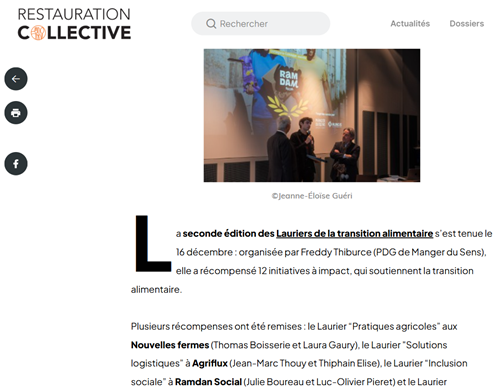 Le 01/03/2025 – Restauration Collective a publié un article sur les Lauriers de la transition alimentaire. La 2e édition des Lauriers de la transition